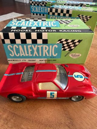Vendo coche Scalextric Ford GT Rojo EXIN original, pieza vintage ideal para coleccionistas ✔️ Incluye caja original con su etiqueta ❌ No conserva los cartones interiores ✔️ Estado general bueno acorde a los años 🔎 Importante: Se observan algunas partes deterioradas por el paso del tiempo (ver fotos). Probablemente necesite puesta a punto o mantenimiento para funcionar perfectamente. 📦 Envío muy cuidado: Protegido con papel de burbuja, dentro de caja de cartón resistente para que llegue en las mejores condiciones. Perfecto para colección, restauración o completar circuito clásico. Si estáis interesados, escribid!