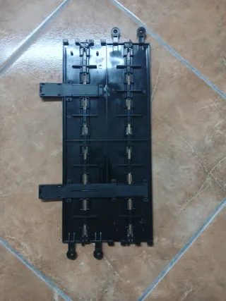 Piezas de plástico negro para sujetar cajas de Scalextric. Son dos unidades. - Material: Plástico. - Color: Negro.