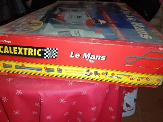 Circuito de carreras Scalextric. 🫨- Dos loopings. 🎢- Varios tramos de pista recta, curva y cambios de carril. 🕹️- Dos mandos (botón de arriba: modo normal, botón delantero: modo velocidad. 🔢- Contador de vueltas 🏁-Salida con meta ♾️-Variedad de circuitos 🏎️-6 coches incluidos ⚠️2/3 piezas tienen algun pequeño defecto pero funciona perfectamente⚠️