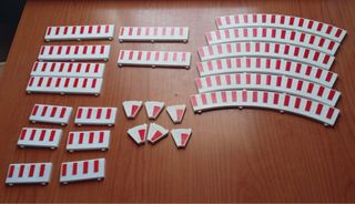 Lote de 24 pianos para circuitos de Scalextric. Son piezas de plástico blanco con franjas rojas. Usado pero en buen estado. El precio no es negociable. Gastos de envío a cuenta del comprador. No cambio. Gracias.