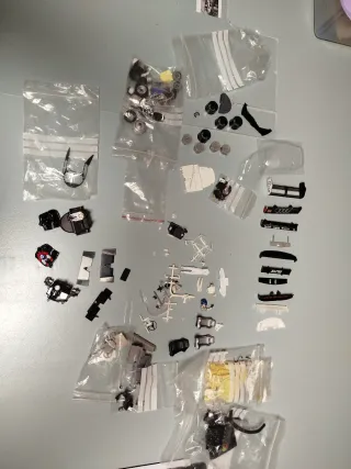 Lote de piezas para maquetas de coches a escala 1:24. Incluye diversas partes para el montaje. - Variedad de componentes. - Ideal para aficionados al modelismo. Alerones con soportes pegados, todo usado. Mini Z, Tamiya, revell, scaleauto Scalextric slot ninco fly rallyslot Src carrera Avant slot