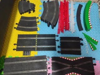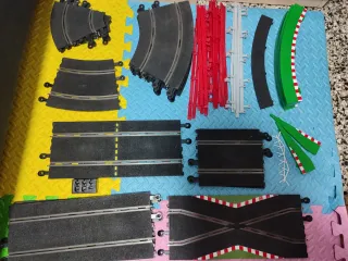 Conjunto de pistas para circuitos de slot Carrera GO. Incluye 2 mandos. Ideal para ampliar tu circuito - Variedad de curvas y rectas. - Incluye piezas de conexión( Nose si funciona) - Compatible con coches Carrera GO.