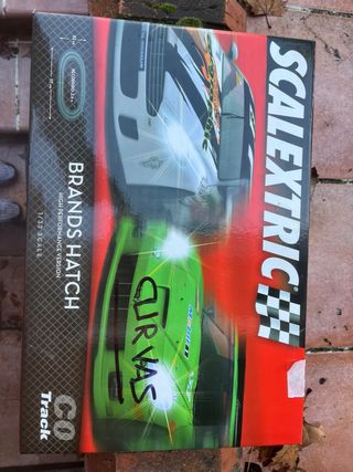 Circuito de Scalextric modelo Brands Hatch, versión de alto rendimiento. Perfecto para iniciarte en el mundo del Scalextric. Caja original. - Dos mandos. - 1 transformador. - 8 curvas. - 1 recta de salida y 1 recta normal. - Escala 1/32. - Pista de 2.4 metros. Posibilidad de añadir: - 2 rectas: +10€ - 4 rectas: +15€ - 1 coche (Leon o Corvette): +30€ - 2 coches(Leon+Corvette): +50€ Scalextric, Ninco, Carrera, Slot Posibilidad de entrega en mano en Madrid y Bilbao
