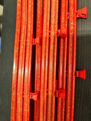 Lote de vallas y elevadores para circuitos Scalextric. Piezas de plástico de color rojo. - Vallas de circuito. - Elevadores de pista.