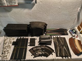 Multitud de pistas y algunas vallas. Pistas especiales, algunas pintadas. Todo se vende para piezas dado que necesitan un buen mantenimiento para puesta a punto. Entre otras cosas: 2 cambios de carril, 5 curvas interiores, 1 cuarto de recta, varias pistas de chicane, conexiones, etc. Unas 60 pistas +Scalextric en mi perfil Envío gratis +80€ (consulta condiciones). Pregunta sin compromiso, también en 614078104. No reservo. scalextric scx ninco carrera slot exin tecnitoys superslot hornby tyco altaya fly regalo nsr policar parma team pistas coches 1:32 digital analogico wos advance system evolution go compact curvas recta