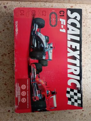 Circuito de carreras Scalextric para los más pequeños. Incluye coches y accesorios para empezar a jugar. - Pista de carreras con diseño divertido. - Dos coches de juguete. - Mandos para controlar los coches. La pista se encuentra en perfecto estado y completa, con todas sus piezas y manual de instrucciones. Usado un par de veces, aún en su caja original, ideal para regalo.