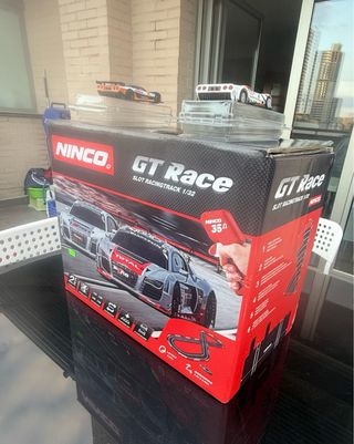 Circuito de slot Ninco GT Race escala 1/32. Incluye pista completa con rectas, curvas, mandos y transformador. Todo en buen estado. Ideal para montar en casa y disfrutar con coches Ninco o compatibles. Se puede vender también con coches Ninco que tengo en otro anuncio si interesa pack. Se puede ver y probar sin problema.