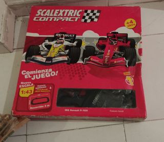 Circuito de Scalextric Compact con dos coches de Fórmula 1. - Incluye coche ING Renault F1 R28. - Incluye coche Ferrari F2008. - Escala 1:43. - Recorrido de pista de 3 metros. - Mando con función Turbo.