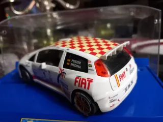 Coche de Scalextric Fiat Punto de rally. No es su caja - Decoración con patrocinadores. - Llantas doradas. - Réplica detallada.