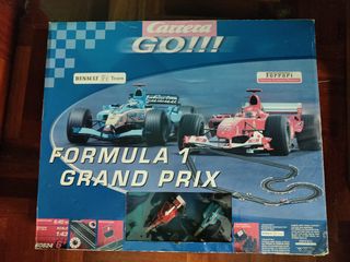Scalextric Gt carrera con cuenta vueltas, dos mandos regulables , 5 coches, 2 de rally y 3 de formula 1 clásicos ( Renault Alonso, ferrari schumacher y McLaren ). Vive tus propios campeonatos sin que nadie controle las normas, ni Briattore ;) tiene barandillas para lqs curvas, looping y soportes para él. Muy rápido
