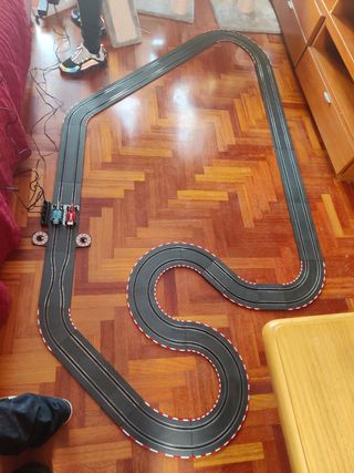 Vendo circuito de coches Scalextric en buen estado. Incluye 2 coches, varios tramos de circuito (curvas, rectas, cruces), puentes, vallas y otros accesorios. Ideal para disfrutar de carreras emocionantes. - 2 coches incluidos. - Variedad de tramos de circuito. - Incluye puentes, vallas y otros accesorios. - Perfecto para carreras.