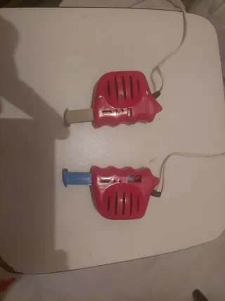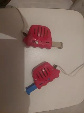 Dos mandos de control para Scalextric en color rojo. Tienen un diseño clásico y son ideales para coleccionistas o para revivir la emoción de las carreras. - Mandos de control de Scalextric. - Color rojo. - Diseño antiguo.