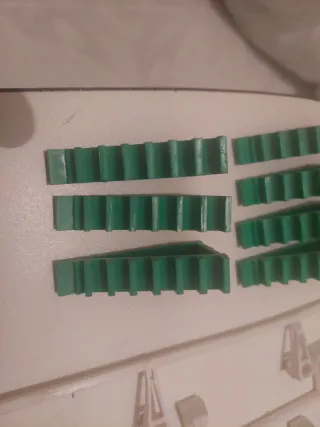 Lote de accesorios para pistas de Scalextric. - 13 vallas de color verde. - 7 peraltes de color blanco.