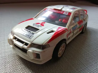 Coche de slot Scalextric del Mitsubishi Lancer Evo IV Pilotado por Tommi Mäkinen campeón del mundo de rallys. En muy buen estado. Se vende sin caja.