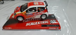 Coche de slot Scalextric del Citroen C2 JWRC. Perfecto estado, incluyo una caja de escalextric de otro coche cómo se ve en la foto, - Modelo: Citroen C2 Super 1600. - Piloto: Sordo. - Dorsal: 41. - Decoración: Rally Italia Sardinia, Cantabria 2006. - Neumáticos: Michelin.