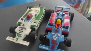 Vendo lote de 6 coches de scalextric digital system. Todos los coches están usados y a algunos les falta alerón y/o retrovisores. Otros están completos. Todos funcionan perfectamente salvo el Safety car al que se le encienden las luces pero no camina. Desconozco el motivo. Dime cual o cueles te interesan y te hago un anuncio con los que pidas. Sueltos los vendo a 35 eur con 10 eur de descuento si compras 2 uds (2 por 60 eur)
