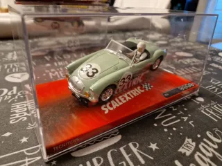 Réplica de coche clásico Scalextric MG. - Modelo deportivo descapotable. - Color verde pálido. - Detalles de competición con dorsal 33. Caja con rotura en la parte superior