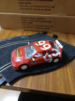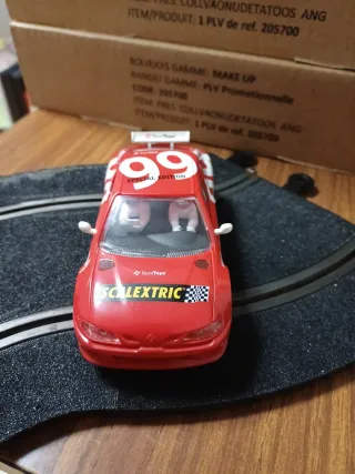 Coche de Scalextric modelo Renault Megane con el dorsal número 99. - Edición especial. - Decoración roja con detalles blancos. - Incluye piloto.