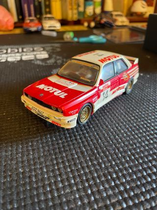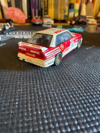 Coche de slot BMW M3 preparado para competición. - Modelo Scalextric. - Decoración Motul. - Guía avant - Motor Avant slot - Chasis Red slot - Interior Lexan - Gomas traseras as25 scaleauto y grip 0 delante Hay que darle un poco de mimo pero es trasera espectacular. Va muy bie