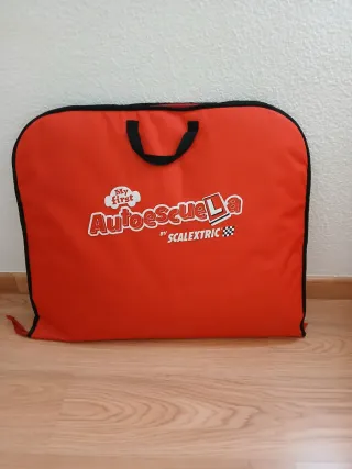 Bolsa de transporte para el juego Scalextric Autoescuela My First. - Color rojo. - Asa negra. - Cierre de cremallera.