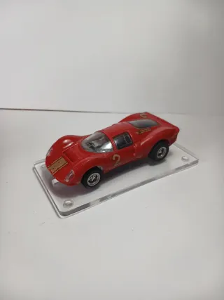 Coche de slot Ferrari P4 en color rojo claro, escala 1:32. - Muy buscado por coleccionistas - Réplica detallada del Ferrari P4. - Diseño clásico de competición. - Años 60 - Dorsal 7 - En buen estado - Revisa mis artículos y ahorra en gastos de envío