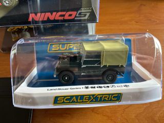 Coche de slot Scalextric Land Rover Series 1. De la marca Superslot - Modelo detallado. Ya descatalogado y difícil de encontrar con precintos - Con luces - Presentado en su embalaje original.