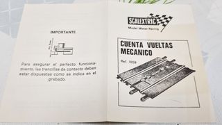 Cuenta Vueltas macánico de Scalextric fabricado por EXIN Made in Spain Referencia 3259, con manual de instrucciones funcionamiento y recta tramo pista compensador 175 mm ref. 3059. En buen estado, tal y como lo ves en las fotos.