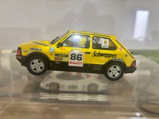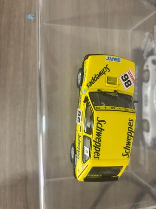 Coche de Scalextric SEAT Fura decorado para rally en color amarillo. - Réplica del SEAT Fura. - Detalles de patrocinadores como Michelin, Schweppes y Pirelli. - Número de dorsal 86.