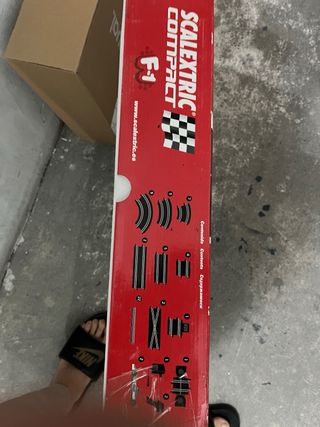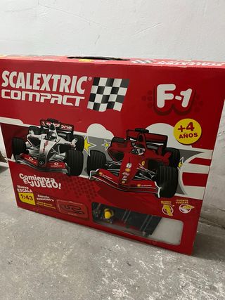 Circuito de carreras Scalextric Compact F-1 con extras, en muy buen estado. - Incluye dos coches de Fórmula 1. - Coches temáticos de Mario Kart incluidos. - Escala 1:43. - Apto para mayores de 4 años.