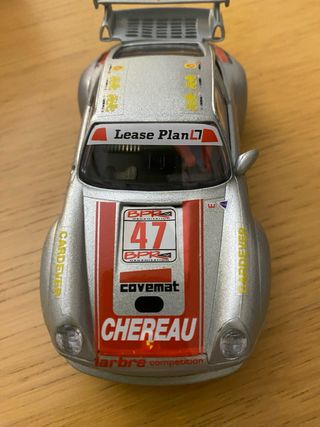 Coche de slot Scalextric Porsche 911 con decoración Lease Plan. - Modelo de competición. - Detalles de patrocinadores. - Réplica detallada. - Falta un retrovisor.