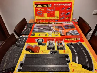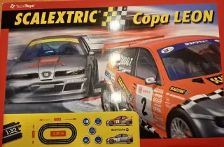 Circuito de Scalextric Copa León. Incluye coches y pistas. - Escala 1:32. - Longitud de pista: 3,20 m. - Dimensiones del circuito: 152 cm x 82 cm.