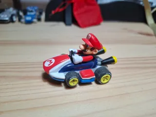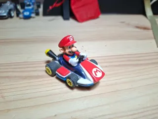 Coche de Mario Kart para Scalextric. - Diseño inspirado en el personaje de Mario. - Ruedas negras con detalles amarillos. - Carrocería roja, blanca y azul.