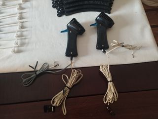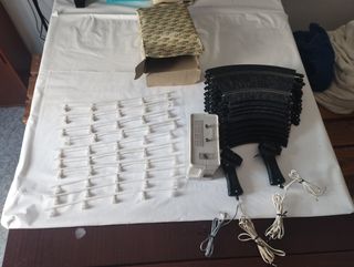 Se venden recambios de Scalextric. Las piezas están en buen estado, aunque muestran señales de uso. Al alimentador habría que cambiarle un tornillo, porque se abre un poco por un lado, que no impide para nada su funcionamiento, porque lo he probado y funciona bien. - 1 alimentador - 10 curvas - 2 mandos - 10 guardarraíles (quitamiedos) Lo que se ve en las fotos. Por favor, mirar bien las fotos