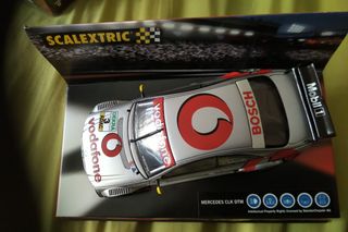 Coche de slot Scalextric Mercedes-Benz CLK-DTM. Se vende todo en su caja original. - Modelo: Mercedes-Benz CLK-DTM. - Marca: Scalextric. - Fabricado bajo licencia de TecniToys Juguetes, S.A.