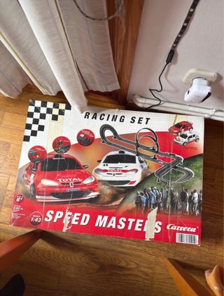 Circuito de carreras Scalextric Speed Masters de Carrera. Tal y como se ve en las fotos, precio negociable ☺️ - Incluye dos coches de competición. - Pista de carreras. - Diseñado para niños a partir de 6 años.