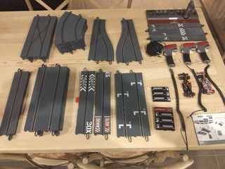 Lote de material para pistas Scalextric en escala 1/32. Incluye varias secciones de pista. Consta de 1 chicane completa 2 cambios de pistas 4 rectas de 350mm 4 curvas standar 2 rectas de 175mm Material nuevo a estrenar. Pero con pequeños puntos de oxido y de ahí su precio Compatible con todas las marcas de pistas de Scalextric tecnitoys exin Triang tyco openslot SCX - Rectas y curvas. - Cruces.