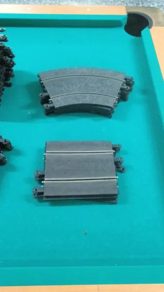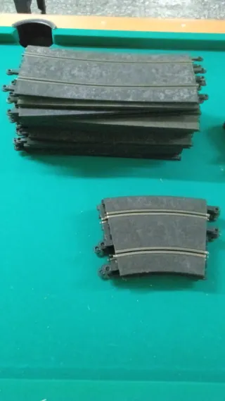 Conjunto de pistas curvas para Scalextric. Ideales para ampliar o crear nuevos circuitos. - Pistas de color negro. - Diseño curvo para trazados dinámicos. 18 Rectas standar 5 Rectas medianas 5. Curvas standar 3. Curvas medianas 1 Pista de salida 1. Mando verde 1 Mando rojo de regalo es para reparar