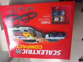 Circuito de slot Scalextric Compact Turbo Twister. Incluye dos coches. - Longitud del circuito: 4,91 metros. - Escala de los coches: 1:43. - Diseño compacto y divertido.