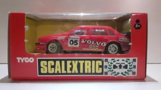 Funcionando, como se ve en las fotos, la caja es del Peugeot 406 Esso. - Modelo: Volvo 850. - Marca: Scalextric Tyco. - Decoración: Brock. - Color: Rojo. Si eliges inpost en envío se hace el mismo día o al siguiente. Slot, srs, srs2, exin,