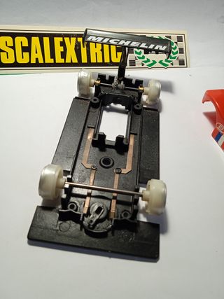 Coche de Scalextric con chasis y carrocería. Le falta motor,y la guia , hay que ponerle los neumáticos. - Carrocería roja y blanca con detalles, es totalmente nueva. - Chasis negro con ruedas - Lo mando por inpost.