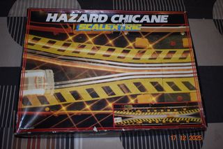 Conjunt PIT LANE Scalextric Tri-ang C192. Pista principal C192 1 ramal PT95S i un altre PT95T Hazard Chicane Scalextric UK C208 Nou per estrenar en capsa Cable connexió i manual Tres trams amb catorze proteccions de palla, dotze cons, valles i banderes
