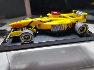 Réplica detallada del coche de carreras Jordan Peugeot 197 de Cartronic - Diseño icónico en color amarillo. - Escala para coleccionistas. Las llantas y neumáticos que lleva no son las originales