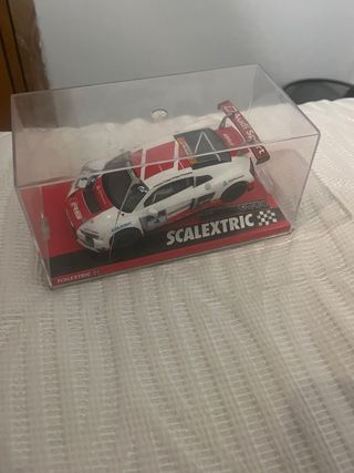 Coche de colección Scalextric. - Modelo Audi R8 LMS. - Diseño deportivo en blanco y rojo. - Detalles de patrocinadores como Falken y Audi Sport Esta nuevo nunca se abrio comprado en 2019