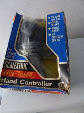 Antiguo Mando de control para coches Scalextric, modelo Race-Tuned. Años 70-80- Diseñado para pilotos avanzados. - Incluye resistencia cerámica. - Frenado dinámico. - Refrigeración por convección de aire.