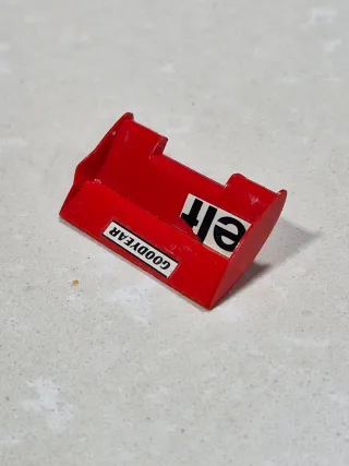 Alerón de coche de slot Scalextric con patrocinio Goodyear. - Diseño deportivo en color naranja y gris. - Detalle del logo Goodyear.