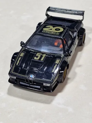 Coche de slot Scalextric BMW M1 negro con dorsal 51. - Diseño deportivo con alerón. - Detalles en dorado. - Escala 1:32.