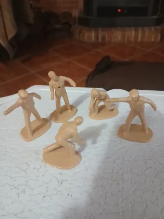 Conjunto de figuras de plástico de la marca Scalextric. - Figuras en diferentes poses. - Color beige. - Base individual para cada figura. Más artículos de Scalextric en mi perfil