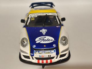 Coche de Scalextric modelo Porsche 911 GT3. - Réplica detallada del modelo de competición. - Diseño con dorsal 33 y patrocinadores. - Scalextric analógico. - Escala 1/32. * El alerón y las luces no son las originales.
