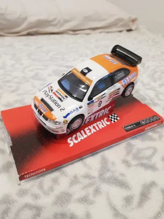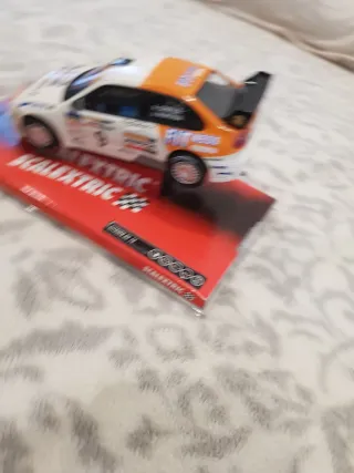 Coche de slot SCX Rally Mitsubishi evo VIII "Solá" en su caja original
