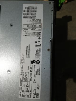 Fuente de alimentación para servidor Fujitsu. - Modelo: DPS-800NBA. - Potencia: 800W. - Certificación 80 PLUS Platinum. - Entrada: 100-240V, 47-63Hz. - Salida: +12V / 65A, +12Vsb / 2A. - Fabricada por Delta Electronics.